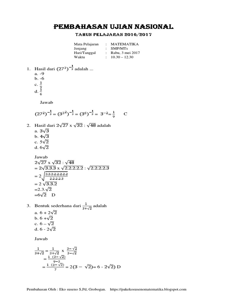 2232021 contoh soal un matematika smp mempersiapkan diri menghadapi ujian nasional salah satunya adalah mempelajari soal.